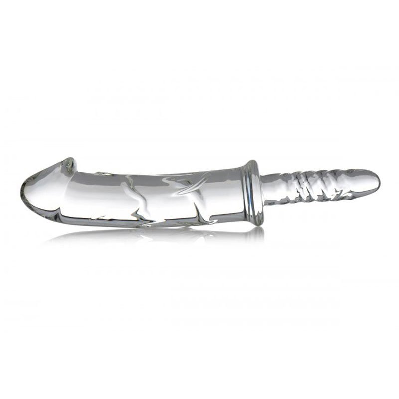 This sparkling glass dildo is as pleasing to the eye as it is to the rest of your body! The dildo has a round glans to help with insertion and a ribbed shaft for extra stimulation with every thrust. The ribbed handle makes for an easy grip, or you can even turn it around for a smaller insertable! The non-porous nature of the body-safe glass makes it the perfect body safe material. Compatible with all lubes, the durable glass is perfect for anal or vaginal use. The durable and beautiful borosilicate glass makes it a thrilling option for temperature play, and is sure to last you for years and years!