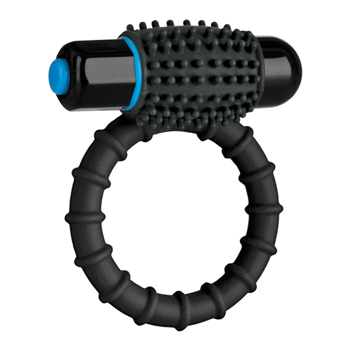 This powerful Vibrating C-Ring is made for pleasuring you and your partner – featuring a textured yet soft, stretchable silicone ring for easy use and a removable bullet in a nubby sleeve for comfortable stimulation. The push-button waterproof bullet offers 10 unique functions. Wear the ring atop the shaft for targeted clitoral stimulation or under the shaft or testicles for self-stimulation. Available in Black and Slate; phthalate-free; batteries included.